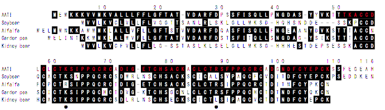 アピオス(アメリカホドイモ)はマメ科の植物ですが、地下にイモができます。このイモはジャガイモやサツマイモに比べ、タンパク質や脂肪、カルシウム、鉄などが多く含まれ、健康食品として注目されています。現在、このアピオスのタンパク質成分を含めた機能性成分の分離精製に着手し、新しい機能性食品を開発する研究を行っています。既にこれまでに、ガン株化細胞に対して増殖抑制活性性を示す、BBI型のトリプシンインヒビター(AATI)やレクチンの分離、精製、遺伝子クローニングを行っています。また、異なるタイプのトリプシンインヒビターやβ-アミラーゼ様タンパク質、ポリガラクツロナーゼインヒビターなどの分離精製が行われています。